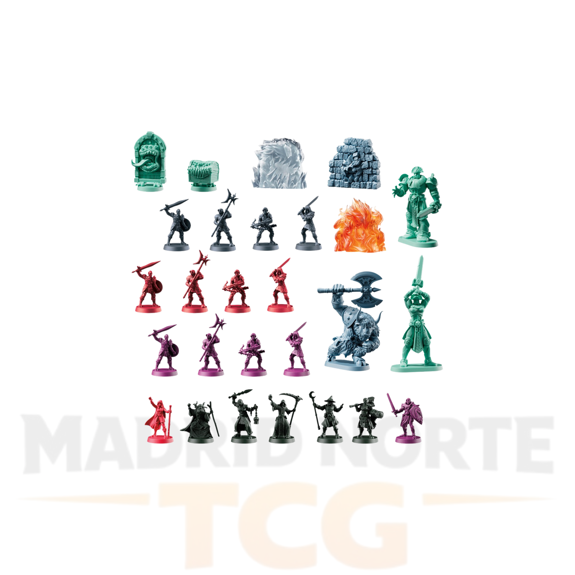 This exciting strategy game includes a challenge book with 10 challenges, 27 detailed miniatures, 64 game cards, a sheet of cardboard tiles, and the game guide.